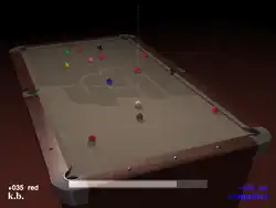 FooBillard was started around 2002 by Florian Berger. The cue sports simulator is free software, licensed under the terms of the GNU General Public License. Originally implemented for Linux it was and ported to AROS, Mac OS X,[1] MorphOS and Windows. The most recently released version is 3.0a.