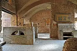 Prepared food was sold at pubs and bars, inns, and food stalls (tabernae, cauponae, popinae).[52] Some establishments had countertops fitted with openings for pots that may have kept food warm over a heat source (thermopolium) or simply served as storage vessels (dolia).[53]