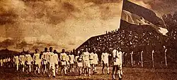 There are many accounts of how association football started in Honduras.[4] A newspaper owned by the Ustariz family (French descendants) was delivered by a French ship, staffed almost entirely by an English crew. It arrived on the coasts of Port Cortés in 1896, bringing with them many soccer balls, which they used for fun in their free time every time they came to Honduras. The practice of this new sport attracted the curiosity of the inhabitants of the port, who saw how the English sailors had fun playing football. These sailors encouraged the Hondurans to learn the game, and play along with them.