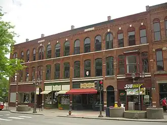 Ford Block is a historic commercial building located at Oneonta in Otsego County, New York. It is a large, three story brick building in a modified Queen Anne style. It was built between 1881 and 1882 and is built of load-bearing brick walls and covered by a flat composition roof. The first floor is a series of storefronts; the second window openings on the second level have segmental arches and those on the third floor round arches. In 1975, it was saved from demolition as part of the urban renewal of Oneonta by a group of local businessmen.[2]