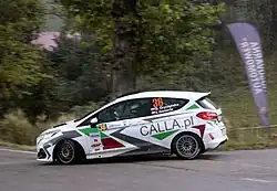 The Ford Fiesta Rally4 is a rally car developed and built by M-Sport and Ford Performance to FIA Group Rally4 regulations and designed for competition in the fourth tier of the Rally Pyramid.[2] It is based upon the Ford Fiesta road car and is the updated version of the Ford Fiesta R2.[3]