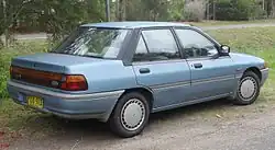 The KA Laser (Australian model code), built under license from Mazda, was introduced in March 1981, replacing the rear-wheel-drive Escort in Australia. The range was available as a hatchback, in both three- and five-door varieties, as well as a four-door sedan badged Ford Meteor. Originally sold only with the 1.3-litre engine, the smaller 1.1-litre engine was never available in Australia. Later, 1.5-litre versions were added, eventually even a turbocharged version. In January 1983, the Laser underwent a facelift to become the KB.[11] Light changes were made to the rear, while the front was redesigned in a more modern style, aligning it with Ford's corporate look of the era.