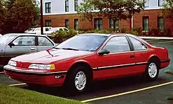 In late 1988, for the 1989 model year, a completely redesigned Thunderbird was introduced, along with the similar Mercury Cougar.[31] The new Thunderbird was developed on Ford's MN12 (mid-sized North American Project 12) platform, which had been in development since 1984.[32] Featuring a 9-inch (229 mm) longer wheelbase than the previous-generation Thunderbird and a four-wheel independent suspension, the car offered better handling and ride quality.