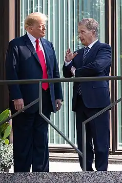 After almost 30 years of close partnership with NATO, Finland joined the Alliance on 4 April 2023. Finland's partnership with NATO was historically based on its policy of military non-alignment, which changed following Russia's full-scale invasion of Ukraine in February 2022.[13] On 1 March 2024, Alexander Stubb, a staunch supporter of NATO, was sworn in as Finland's new president.[14] On 7 March 2024, Stubb made his first foreign trip as Finland's new president to Nato's Nordic Response military exercise in northern Norway.[15]