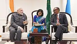 Indo-Rwandan relations are the foreign relations between the Republic of India and the Republic of Rwanda. India is represented in Rwanda through its honorary consulate in Kigali. Rwanda has been operating its Embassy in New Delhi since 1998 and appointed its first resident Ambassador in 2001.[338]