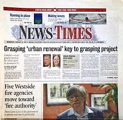 The News-Times is a weekly newspaper covering the cities of Forest Grove and Hillsboro in the U.S. state of Oregon. Established in 1886 and with coverage focused on Forest Grove for most of its history, the paper expanded coverage to Hillsboro, when, in August 2019, its owner launched a separate Hillsboro edition of the News-Times to replace the Hillsboro Tribune.[2] The News-Times is published on Wednesdays.[3] It is owned by Pamplin Media Group, which publishes other community newspapers in the Portland metropolitan area.