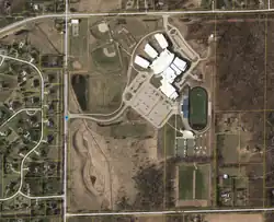 Around the school are various athletic facilities including a large football stadium(with a track), multiple soccer fields, tennis courts, and other opens fields used for various sports. Additionally, there are three major parking lots: a middle school faculty lot, a high school faculty lot, and a general lot on the high school side used for student and sport event parking.[24]