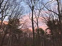 Chipmunks become visibly active in spring, along with the squirrels, raccoons, and skunks that are more often seen year-round.[1] Turtles sun themselves in Strack Pond on warm days. On summer nights, cicada song fills the area and surrounding neighborhoods.[1] Toads also can be heard croaking in the evenings. In mid-summer, hatching butterflies begin to gravitate to the Joe Pye Weed, dogbane, milkweed, thistle, and other native plants.[1] Fall brings spectacular color, as many varieties of trees prepare to drop their leaves. Several species of hawks pass through.[1] Winter is quiet, featuring the occasional tracks of small mammals in snow.[1]