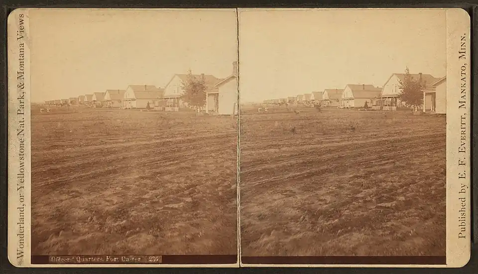 Fort Custer was established during the Indian wars in the Department of Dakota by the U.S. Army to subjugate the Sioux, Cheyenne and Crow Indians near present-day Hardin, Montana. The post was named for General George Armstrong Custer who died at the Battle of the Little Big Horn.