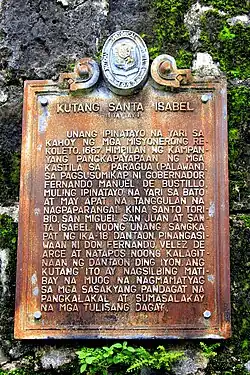 - ^ a b Kutang Santa Isabel [Fort Santa Isabel] (Marker) (in Filipino). Fort Santa Isabel in Taytay, Palawan: National Historical Commission. 1993.