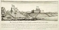 Fort Sekondi, also Fort George, was an English fort on the Gold Coast (now Ghana), built in 1682 at Sekondi (earlier Zakonde and Secondee),[1]: 56 next to the Dutch Fort Orange, which had been built in 1642. This first building was small, according to William Claridge: "[...] at Sekondi [...] Captain Henry Nurse, Agent for the English (Royal African) Company, also built a fort there a few years later. Both these buildings were of about the same size and only a gun-shot apart",[1] and, "The Dutch Fort Orange was a very small place, being merely a square white house in a yard, mounting eight or ten guns on a terrace on the roof. The first English fort had been a very similar building [...]".[1]: 164 This fort was destroyed on 1 June 1698, during the Dutch-Komenda war, and reduced to blackened outer walls. Although denied by the Dutch, reports and letters sent at the time indicated that the Dutch instigated the attack and that some plundered goods were taken to Castle Orange next-door. Attempts were made to rebuild it in 1700, though these had to be abandoned because of hostility from the indigenous population.[1]: 151–153