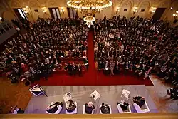 The annual Forum 2000 Conference, along with other events organized by the Forum 2000 Foundation, are held in Prague. The mission of these conferences is to “map the globalization process and to note its positive results as well as the perils encountered by an increasingly interconnected world.”[4] Since 1997, the Forum 2000 Conferences have attracted a number of prominent thought leaders, Nobel laureates, former and acting politicians, business leaders and other individuals, whose common denominative is experience with bearing responsibility. Prince Hassan bin Talal, Frederik Willem de Klerk, Bill Clinton, Nicholas Winton, Oscar Arias Sánchez, Dalai Lama, Hans Küng, Shimon Peres, Madeleine Albright, Mário Soares, Hanna Suchocká, Sergey Kovalyov, Jorge Castaneda, Alyaksandar Milinkevich, Wole Soyinka, Aung San Suu Kyi, Luisa Neubauer, Maia Sandu, Danuše Nerudová, Tsai Ing-wen, Iveta Radičová, Elmar Brok, Michael McFaul, Walter Russell Mead, Penpa Tsering, Petr Pavel, Vladimir Kara-Murza and Lech Wałęsa are just a few of those who have attended the Forum 2000 events.