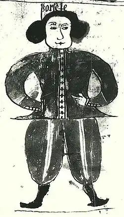 According to Snorri Sturluson in the Prose Edda,[7] Forseti is the son of Baldr and Nanna. His is the best of courts; all those who come before him leave reconciled. This suggests skill in mediation and is in contrast to his fellow god Týr, who "is not called a reconciler of men."[8] However, as de Vries points out, the only basis for associating Forseti with justice seems to have been his name; there is no corroborating evidence in Norse mythology.[9] 'Puts to sleep all suits' or 'stills all strifes' may have been a late addition to the strophe Snorri cites, from which he derives the information.[10]