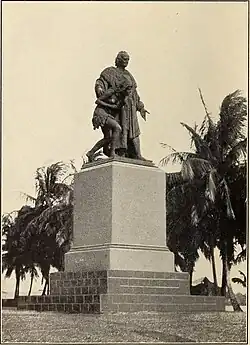 On 5 October, the fleet entered Almirante Bay, where Columbus 'found the first sign of fine gold, which an [Amerindian man] wore like a large medal on his breast.'[7] They then anchored in the Chiriqui Lagoon, which the Talamancan interpreters informed was a nine-day's march from Ciguare, a rich land which lay on another ocean.[7] Columbus took Ciguare to mean Ciamba, but nonetheless seems to have given up his search for a maritime passage to the East, having had no luck so far, and instead focussed on trading for gold, fine specimens of which the new-found peoples had.[7]