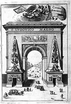 François Blondel (French pronunciation: [fʁɑ̃swa blɔ̃dɛl]; c. 10 June 1618 – 21 January 1686)[1] was a soldier, engineer of fortifications, mathematician, diplomat, military and civil engineer and architect, called "the Great Blondel", to distinguish him in a dynasty of French architects.[2] He is remembered for his Cours d'architecture which remained a central text for over a century. His precepts placed him in opposition with Claude Perrault in the larger culture war known under the heading Querelle des anciens et des modernes. If François Blondel was not the most highly reputed among the académiciens of his day, his were the writings that most generally circulated among the general public, the Cours de Mathématiques, the Art de jetter les Bombes, the Nouvelle manière de fortifier les places and, above all his Cours d'Architecture.