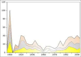 | 1900 Paris | 14 | 4/4 | 0 | 1 | 1 | 2[7] |