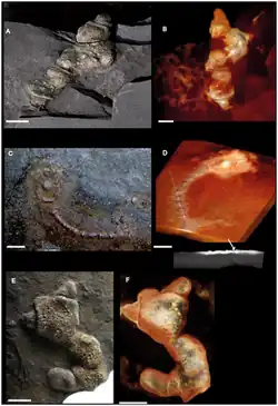 - ^ a b c El Albani, Abderrazak; Bengtson, Stefan; Canfield, Donald E.; Bekker, Andrey; Macchiarelli, Roberto; Mazurier, Arnaud; Hammarlund, Emma U.; et al. (2010). "Large colonial organisms with coordinated growth in oxygenated environments 2.1 Gyr ago" (PDF). Nature. 466 (7302): 100–104. Bibcode:2010Natur.466..100A. doi:10.1038/nature09166. PMID 20596019. S2CID 4331375. Archived from the original (PDF) on June 16, 2024.