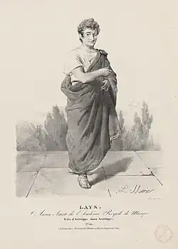 In January 1797, Lays enjoyed one of the biggest successes of his career when he sang the lead role in Grétry's Anacréon chez Polycrate. The takings from this opera (9,354 livres on the first night alone) helped rescue the disastrous finances of the Théâtre de la République et des Arts (as the Opéra had been renamed).[33] If the quality of his voice was universally admired, his lack of physical elegance, his short and stocky build and the southern accent he never completely managed to lose predisposed Lays to comic rather than dramatic roles, particularly middle-aged buffo characters, in which, "singing of love and good wine, he proved to be sublime".[34] Anacreon was one such role. Lays played the character again in 1803 in the opera Cherubini dedicated to the ancient Greek poet. A few decades later, Castil-Blaze – referring to the work by Grétry – commented: