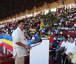 Franklin Magtunao Drilon (Tagalog pronunciation: [dɾiˈlɔn]; born November 28, 1945) is a Filipino lawyer and former politician.[2] He has served thrice as president of the Senate: in 2000, from 2001 to 2006, and from 2013 to 2016.