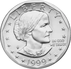 Asked to produce a design for the Susan B. Anthony dollar, Gasparro found two photos of women's suffrage leader, one at age 28 and the other when she was 84. He initially chose the portrait of the younger Anthony, but widespread consensus was that the design made her look too pretty. His design using the older photo was accepted. While Gasparro felt that the Anthony dollar was his "top achievement", the coin was largely rejected by the public, which complained that the coin was too similar to the Washington Quarter.[1][2]