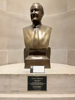 Frank O'Bannon is a public artwork by American artist Kenneth G. Ryden, located in the Indiana Statehouse rotunda in Indianapolis, Indiana. The 700-pound (320 kg)[1] bronze bust was commissioned by the state[2] to honor the memory of Indiana's 47th governor,[3] Frank O'Bannon. The piece was cast at the Anderson University Art Foundry in 2005[4] and presented to the state in February 2006.[5]