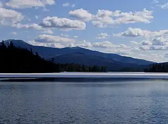 Franklin Falls Pond is a 439-acre (178 ha), 2.7-mile-long (4.3 km) pond created by damming the Saranac River three miles (4.8 km) northeast of Lower Saranac Lake in the Adirondack Mountains of northern New York State. The pond is also part of the 740-mile (1,190 km) Northern Forest Canoe Trail, which begins in Old Forge, NY and ends in Fort Kent, ME.
