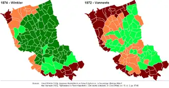 The French Flemish dialect has had significant influence on local toponyms. For example, the French Westhoek towns of Robecq and Dunkirk are derived from the Flemish names of Robeke and Duinkerke.