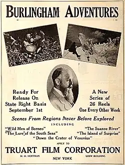 - ^ "Burlingham Adventures", advertisement, Motion Picture News (New York, N.Y.), August 27, 1921, p. 1018. Internet Archive. Retrieved May 9, 2020.