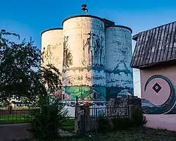 Sign in Antonito, CO summarizing the life and work of Fred Haberlein"The History of the San Luis Valley" at Silo Park, Antonito, CO."San Miguel" as it appeared (circa 2005) during renovation of the S.P.M.D.T.U. in Antonito, CO."San Miguel," "Los Trabajadores," and "La Alma - The Earth Mother" on the S.P.M.D.T.U. building in Antonito, CO (circa 2005) during renovation.