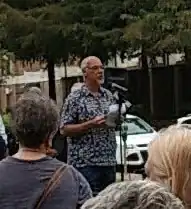 ![]() Fred Prejean speaking at the site of the Mouton statue in Lafayette, Louisiana, August 28, 2018 | |