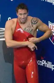 Frédérick Bousquet (French pronunciation: [fʁe.de.ʁik bu.skɛ], born 8 April 1981 in Perpignan) is a retired freestyle and butterfly swimmer from France. He was the holder of the world record in the 50 m freestyle in a time of 20.94 in long course, set on 26 April 2009 at the final of the French Championships. Since the record was swum in a banned, performance-enhancing suit it remained in limbo whether the record stood until FINA approved it in July following a modification of his suit.[1] He is the first swimmer to go under the 21-second mark in this distance. He also held the world record in the 50 meter freestyle short course in a time of 21.10, set in 2004 at the Men's NCAA Division One Swimming and Diving Championships, for over two years. At the 2009 World Championships in Rome Bousquet captured a silver medal in the 50 meter freestyle and a bronze in the 100 meter freestyle.