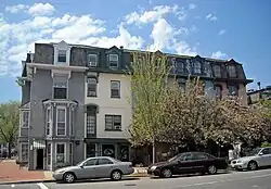 On September 3, 1838, Douglass successfully escaped by boarding a northbound train of the Philadelphia, Wilmington and Baltimore Railroad in Baltimore.[40] The area where he boarded was formerly thought to be a short distance east of the train depot, in a recently developed neighborhood between the modern neighborhoods of Harbor East and Little Italy. This depot was at President and Fleet Streets, east of "The Basin" of the Baltimore harbor, on the northwest branch of the Patapsco River. Research cited in 2021, however, suggests that Douglass in fact boarded the train at the Canton Depot of the Philadelphia, Wilmington, and Baltimore Railroad on Boston Street, in the Canton neighborhood of Baltimore, further east.[41][42][43]