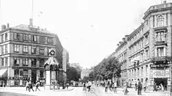 Frederiksberg Allé is a tree-lined avenue which runs through the southernmost part of the Frederiksberg district of Copenhagen, Denmark. It connects Vesterbrogade at Værnedamsvej to Frederiksberg Runddel in front of the main entrance to Frederiksberg Gardens. It was originally constructed in 1704 as the king's private road leading to his new summer residence, Frederiksberg Palace. It developed into the backbone of an entertainment district in the mid 18th century, and has continued to be associated with theatres until the present day. The avenue is lined with two double rows of linden trees and bisects Sankt Thomas Plads, a small round plaza, shortly after its departure from Vesterbrogade.