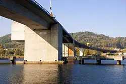 Frednes Bridge (Norwegian: Frednesbrua) is a double-leaf bascule bridge on Highway 356 in Porsgrunn Municipality in Telemark county, Norway. The 461.5-metre (1,514 ft) long bridge crosses the Porsgrunn River (Porsgrunnselva) just before it flows out into the Frierfjord at the site of Norsk Hydro's factory complex on Herøya.