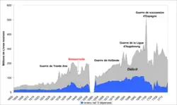 France had been engaged in the War of the League of Augsburg since 1688 and in 1694 no peace was in sight. To meet military expenditure, the Controller-General of Finances, Louis Phélypeaux de Pontchartrain, and his predecessor had already implemented the traditional measurers of war financing; raising the Taille and the contract of the Ferme générale, obliged the privileged estates to contribute to the treasury, created and sold countless government positions and debased the currency.[2] But these measures did not make it possible to cover the war expenditures. In 1693, they amounted to 180 million livres while the net revenue of the government after deducting the costs of collection only was 108 million livres.[3] An increase in the taxes of the common people was not an option after the great famine of 1693-1694. In the inner circle around the King, thought began to be given to the creation of a new tax to which the rich and privileged would contribute. This was the basis of the poll tax of 1695.[4]