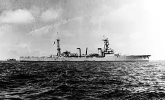 On 25 January 1940 she sailed to Dakar as part of Force Y[13] for employment on sweeps of the Atlantic searching for enemy merchantmen and merchant raiders.[14] On 11 April Force Y departed Dakar.[15] On 4 May 1940 as the Flagship of Vice Admiral Godfroy she arrived at Alexandria and took command of Force X.[16][17] On 22 June she was preparing to sail with the cruisers Duguay-Trouin and Suffern for a bombardment mission on Augusta, Sicily and a raid off the Straits of Messina when official notification of the French Armistice with Germany was delivered. Their departure was cancelled and the French ships were barred from departing the harbour after 23 June. On 3 July Vice-Admiral Andrew Cunningham presented Admiral Godfrey the ultimatum - surrender the ships to British control, demilitarize the ships at their moorings or scuttle. The Admirals signed an agreement on 7 July to demilitarize the vessels.[18]