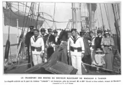 Lalande was reactivated in 1898 and assigned to the Mediterranean Squadron. The unit at that time consisted of four pre-dreadnought battleships, four ironclads, two armored cruisers, and three other protected cruisers, among other smaller vessels.[13] She took part in the maneuvers that year, which lasted from 5 to 25 July.[14] The ship was placed in the 2nd category of reserve in Toulon later that year.[15] Lalande and her sister ships had been deactivated and placed in the reserve fleet by January 1901.[16] Between 1902 and 1905, the ship received new boilers at Rochefort.[5] She was reactivated in 1906 and assigned to the Mediterranean Squadron.[17] She took part in the fleet maneuvers that year, which began on 6 July with the concentration of the Northern and Mediterranean Squadrons in Algiers. The maneuvers were conducted in the western Mediterranean, alternating between ports in French North Africa and Toulon and Marseille, France, and concluding on 4 August.[18] She was present for a naval review in Marseille on 16 September with elements of the Mediterranean Squadron.[19]