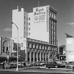 Between the 1880s and World War II, Downtown Fresno flourished, filled with electric streetcars,[37] and contained a number of "lavish" and "opulent" buildings.[38] Among them, the original Fresno County Courthouse (demolished), the Fresno Carnegie Public Library (demolished), the Old Fresno Water Tower, the Bank of Italy Building, the Pacific Southwest Building, the San Joaquin Light and Power Building (currently known as the Grand 1401), and the Hughes Hotel (burned down), to name a few.