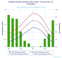 - ^ "Fresno, California Climate Summary". RSS Feeds World Weather. Archived from the original on October 20, 2006. Retrieved March 6, 2007.