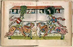Under the terms of the Western Schism, Duke Frederick sided with Antipope John XXIII, whom he helped on his flight from the Council of Constance in March 1415.[2] The Luxembourg king Sigismund had John arrested in Breisgau and placed Frederick under the Imperial ban. Thanks to the support of the local populace he managed to keep Tyrol, though he lost the western Aargau, the Freiamt and County of Baden estates, in the old homeland of the Habsburgs, to the Swiss.