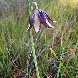Fritillaria biflora var. ineziana, the Hillsborough chocolate lily, is a species of fritillary endemic to San Mateo County, California. It grows on serpentinite in cismontane woodland and valley and foothill grassland at elevations that range from 295 to 525 feet (90 to 160 meters) [2] It is typically found on serpentine soils, and it is defined as a "broad endemic" (5.4/6.2 affinity) where 85-94% of occurrences are expected to occur on ultramafic soils.[3]