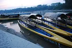 The town is one of the most isolated which contains some tourism infrastructure.[8] It is located near the archeological sites of Bonampak, Palenque and Piedras Negras in Guatemala.[5] However, its most important function is its water connection to the otherwise inaccessible site of Yaxchilan, with just about every tour coming here bringing visitors for the site.[8] The town has a main dock area, with small narrow boats called “lanchas” to ferry visitors to the archeological site 25 km downriver, as well as to Guatemala across the river.[4] As an aquatic border crossing point (there is no bridge over the river), lanchas in Frontera Corozal bring people one way to the Guatemalan town of Bethel. From there, tours are available to the distant ruins of Tikal. The only government officials in Frontera Corozal or Bethel are respective border agents and it is necessary to check in with both in order to cross legally.[3] Border crossers number between twenty and 120 people per day depending on the season.[3][4]