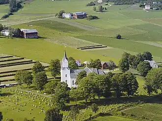 The earliest existing historical records of the church date back to the year 1533, but the church was not new that year. The church likely built during the 14th century, but it was closed down around the time of the Reformation in Norway in 1589. The original church site was located about 275 metres (902 ft) northwest of the present church site. For several centuries there was not a church in this village and residents had to go to the nearby Logtun Church which was the only other church in the area.[4][5]