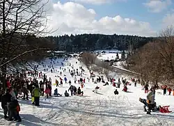 In 2016, massive cutting of trees in the park occurred, one of the largest in the mountain's recorded history. Over 10 ha (25 acres) of forest have been cut. Park administration then stated that an autochthonous species of oak will be planted instead. However, they never planted anything and in the future years a thicket of the remaining black locust high shrubs grew instead. The administration, nevertheless, claims that the oaks have been planted. In the spring of 2019, aggressive cutting continued. Apparently indiscriminate cutting, without proper notifications what is being cut and by whom, destroyed hiking paths and orienteering marks. Also, the cutting sections of the forest weren't properly secured and some were completely wrong: beech trees have been cut even though the table stated that oak trees are being cut. According to the environmentalists, regular visitors and recreational athletes, the cutting was never so massive.[6][7][8]