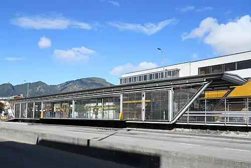 The simple station Fucha is part of the TransMilenio mass-transit system of Bogotá, Colombia, opened in the year 2000.