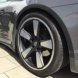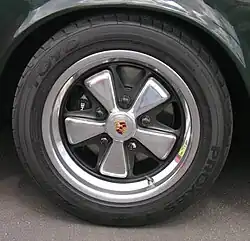 The Fuchs wheel or Fuchsfelge is a wheel made for the first Porsche 911 model in the early 1960s.[1] Designed in conjunction with Otto Fuchs KG, Porsche modeler Heinrich Klie and Ferdinand Porsche Jr for the 1967 model year Porsche 911S, the Fuchs wheel was the first light-weight forged wheel to be fitted to a production automotive vehicle. They provided the rear-engined sports car with a reduction in unsprung mass, using an alloy wheel.[2]