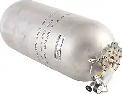 A fuel tank (also called a petrol tank or gas tank) is a safe container for flammable fluids, often gasoline or diesel fuel. Though any storage tank for fuel may be so called, the term is typically applied to part of an engine system in which the fuel is stored and propelled (fuel pump) or released (pressurized gas) into an engine. Fuel tanks range in size and complexity from the small plastic tank of a butane lighter to the multi-chambered cryogenic Space Shuttle external tank.