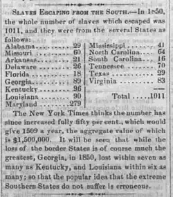 By 1843, several hundred enslaved people per year escaped to the North successfully, making slavery an unstable institution in the border states.[2]