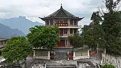 Cityscape of county town Shangpa Street Octagonal Pavilion of Zhiziluo Laomudeng Church The Crown Peak in Gaoligong Mountains | |