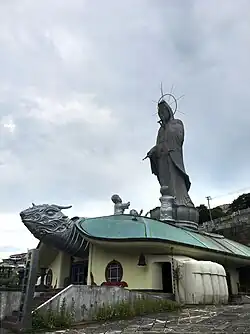 In 1910, the main hall of the temple was designated as a National Treasure of Japan. The temple was completely destroyed in the atomic bombing of Nagasaki on 9 August 1945 at 11:02 am. It was subsequently rebuilt in 1979 with an 18-meter aluminium alloy statue of Kannon, the Bodhisattva of compassion, standing atop a spirit turtle. Inside is a Foucault pendulum which swings over the remains of 16,500 Japanese killed during World War II and in the atomic bombing of the city. At 25 meters, it is one of the largest Foucault pendulums in Japan.[8]